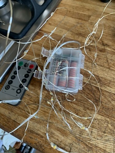 Ok, so let me just say that these little lights are amazing! Well, Im just blown away by how great these lights work! Batteries are not included, each string takes 3 AA batteries and each remote takes a flat watch battery and comes with it. These little guys really put on a show! I love that I have 12 different choices for light shows. I also love that theres a timer if I want to use it. I finally have solved the problem of how to light the wreath on my front door without having an ugly cord, or using other light sets that eat batteries in a day or so. Trust me, you can not go wrong with these things! Ive seen similar strings in stores....but without a remote, without the light sequence choices, and for a much higher price for just one string! So happy with these. I bought a sets of 2, but I may be ordering more.... theyre that neat! Ok, so let me just say that these little lights are amazing! Well, Im just blown away by how great these lights work! Batteries are not included, each string takes 3 AA batteries and each remote takes a flat watch battery and comes with it. These little guys really put on a show! I love that I have 12 different choices for light shows. I also love that theres a timer if I want to use it. I finally have solved the problem of how to light the wreath on my front door without having an ugly cord, or using other light sets that eat batteries in a day or so. Trust me, you can not go wrong with these things! Ive seen similar strings in stores....but without a remote, without the light sequence choices, and for a much higher price for just one string! So happy with these. I bought a sets of 2, but I may be ordering more.... theyre that neat!