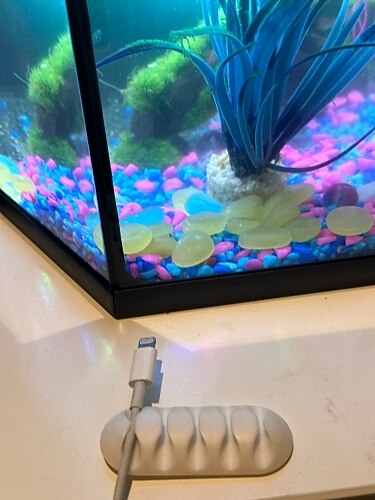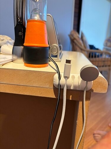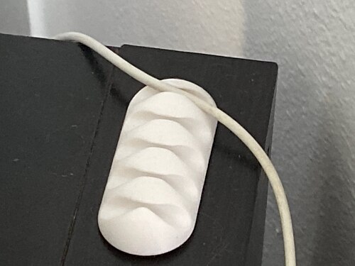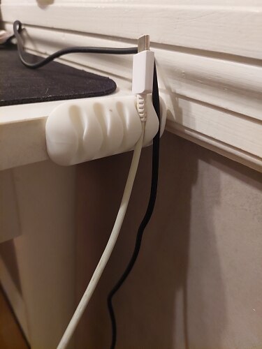 Cable guide very easy to attach to bedside table. Keeps table top free of cables except the one in use and free of cables when not in use. A simple but very effective solution. Cable guide very easy to attach to bedside table. Keeps table top free of cables except the one in use and free of cables when not in use. A simple but very effective solution.