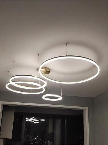 Pendelleuchte 3-Licht 80/60/40/20 cm LED Pendelleuchte Metall Acryl Ring Kreis Design lackiert Oberflaechen 90w 113w 3-Ringe 4-Ringe mit Fernbedienung dimmbar