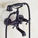 Waschbecken Wasserhahn, Messing Telefonform Wandinstallation weit verbreiteter ausziehbarer Landhausstil galvanisiertes Kupfer-Finish Badewannenarmatur mit zwei Griffen mit Handbrause und Ablauf |