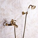 Duscharmatur / Regenduschkopf-System-Set – Handbrause inklusive ausziehbarem Vintage-Stil / Country Antik-Messing / Galvanisch montierte Außenkeramikventil-Badewannen-Duschmischbatterien /