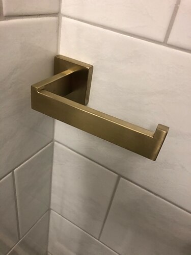 My favorite piece is the toilet paper holder. It\s as easy to install as it looks. My biggest concern was that the roll would tug off if you pulled hard enough, but that\s not been a problem. It looks elegant. I would buy them again. My favorite piece is the toilet paper holder. It\s as easy to install as it looks. My biggest concern was that the roll would tug off if you pulled hard enough, but that\s not been a problem. It looks elegant. I would buy them again.