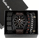 Keller Weber 5-teiliges Uhren-Armband-Set, luxuriöse Herren-Quarz-Armbanduhren, Lederband, modische Freizeituhr für Männer, Geschenk für Freund |