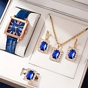 5 Stück/Set Damenuhr Vintage quadratischer Zeiger Quarzuhr analoge grüne Armbanduhr & Strass-Schmuckset, Geschenk für Mama |
