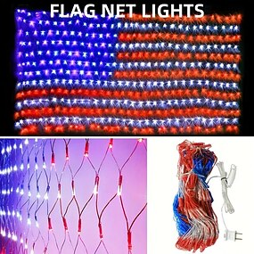 Lichterkette mit amerikanischer Flagge, Dekoration zum 250. Jahrestag der USA für den 4. Juli, wasserdichte 420-LED-Lichterkette im patriotischen Stil für Außenbereich, Garten, Veranda – Feierlichkeiten zum 250. Jahrestag der USA