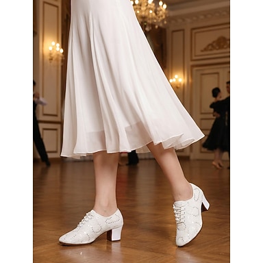 Weiße Tanzschuhe zum Schnüren für Damen – glitzernde Ballsaalschuhe mit dickem Absatz und atmungsaktivem Mesh-Design für Training und Auftritt