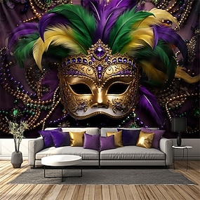 Karnevals Fasching Fasnacht Maske hängende Tapisserie Wandkunst große Tapisserie Wandbild Dekor Fotografie Hintergrund Decke Vorhang Zuhause Schlafzimmer Wohnzimmer Dekoration