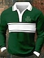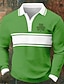 St Patrick's Day Men's Shamrock Striped Waffle Polo Shirts Long Sleeve Polo Shirts Collared Shirts Casual Daily Wear Festival Wear Buttons Spring Fall Winter Dark Green Green Army Green