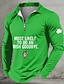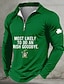 St Patrick's Day Men's Shamrock Leprechaun Zip Polo Shirts Long Sleeve Polo Shirts Lapel Casual Outdoor Festival Outfit 3D Print Spring Fall Black Light Green Dark Green