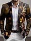 Men's Notes Blazer Jacket Coat Fashion Comfortable Breathable Artistic Casual Daily Party Evening Wear 3D Print Buttons Multi Pocket Spring Fall & Winter Notch Long Sleeve Blue Purple Brown