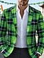 St. Patrick Men's Plaid Blazer Jacket Coat Fashion Comfortable Breathable Artistic Casual Daily Party Evening Wear Festival Pocket 3D Print Buttons Spring Fall & Winter Notch Long Sleeve Blue Purple