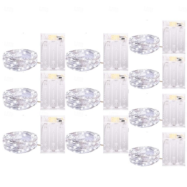 10 Pcs 5M/16.4FT 50LED Beads Fairy String Lights Halloween Wedding Valentine's Day Party Indoor and Outdoor Atmosphere Decoration Light String AAA Battery Box Timer Function