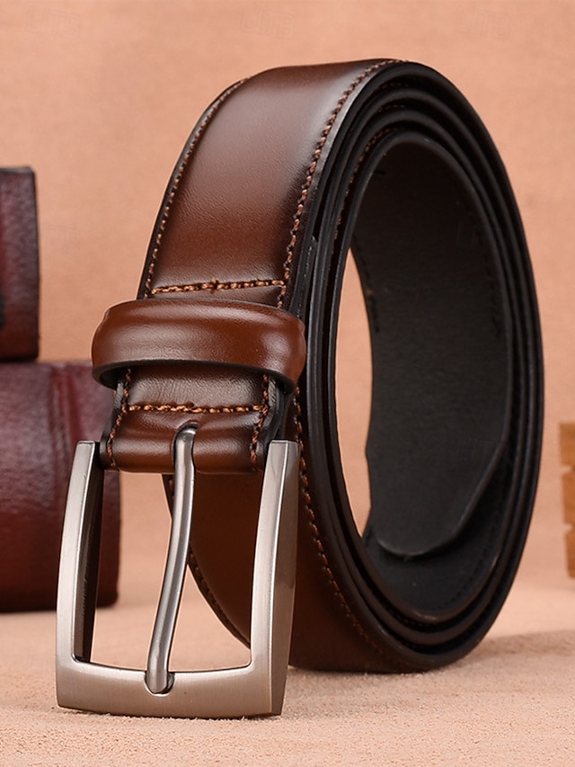 Men's Brown Leather Belt – Classic Buckle Design with Embossed Pattern, Perfect for Casual and Formal Wear