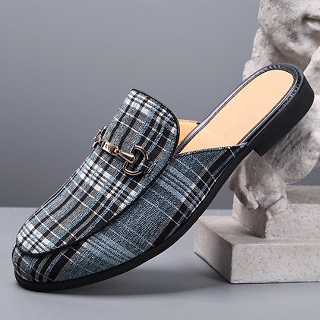 Men's Plaid Slip-On Loafers – Lightweight Casual Mules with Metal Bit Detail for Business, Office and Smart-Casual Occasions