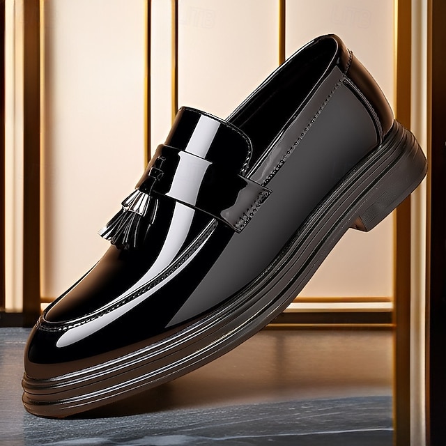 Men's Black Patent Leather Tassel Loafers – Elegant Slip-On Dress Shoes for Formal Events, Weddings, and Business Wear