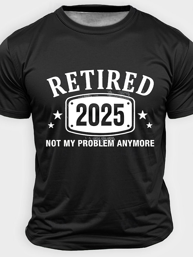 Men's Retired 2025 T-Shirt Not My Problem Anymore Short Sleeve Navy Blue Work Humor Tee