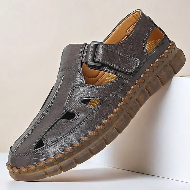 Men's Brown Faux Leather Fisherman Sandals with Velcro Strap, Breathable Design and Comfortable Sole for Summer, Outdoor Activities and Beach Wear