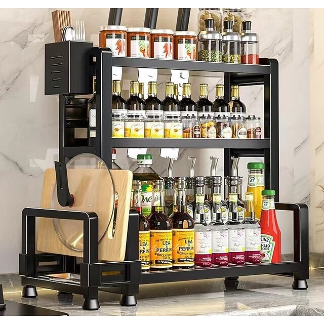 Metal Kitchen Storage Rack, Multi-Functional Spice and Knife Storage Organizer, Cutting Board, Utensil Organizer, Sturdy & Easy to Assemble, Ideal for Spices, Condiments, Utensil Racks Industrial Styl