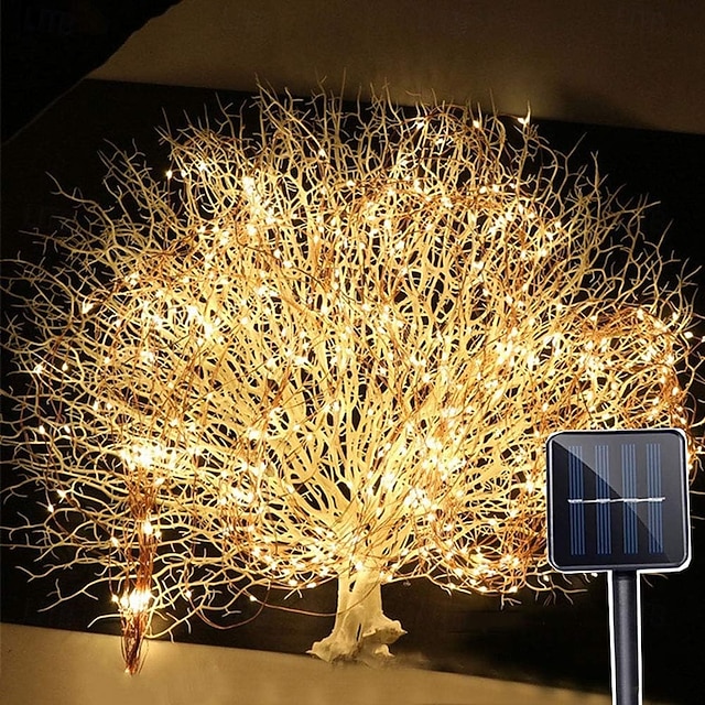 Solar Waterfall Lights LED Tree String Lights Ponytail Shaped Fairy Lights 2m 200LEDs 8 Modes Lighting Outdoor Garden Balcony Tree Decoration Atmosphere Light