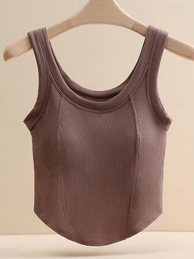 Women's Camisole Tank Top Basic Sleeveless Regular Tops Crew Neck Black White Brown Gray Summer