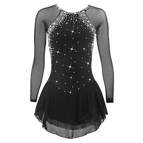 Figure Skating Dress Women's Girls' Ice Skating Dress Violet Black White Open Back Mesh Spandex High Elasticity Training Competition Skating Wear Classic Crystal / Rhinestone Long Sleeve Ice Skating