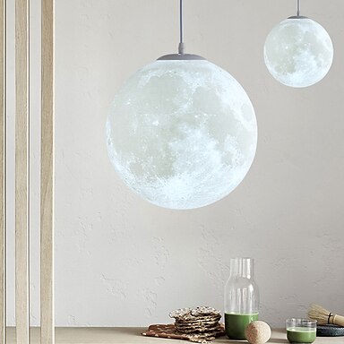 Lámpara colgante con impresión 3d de 30/35 cm, diseño de globo led, luna, estilo artístico, decoración del hogar. luz colgante creativa