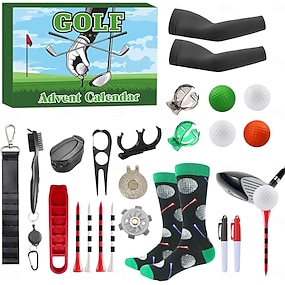 Calendario de adviento de golf, regalo navideño para golfistas, calendario de cuenta regresiva de Navidad de 24 días para padre, esposo o novio, regalo navideño perfecto con pelotas de golf, tees y