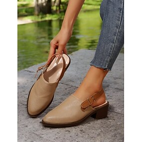 Sandalias de tira trasera con perforaciones en almendra para mujer, tacón cuadrado y correa con hebilla: zapatos cómodos y elegantes para el trabajo y salidas informales