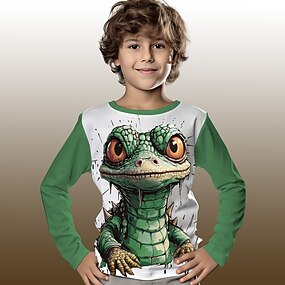 Chico 3D Graphic Animal Cocodrilo Camiseta Manga Larga Primavera Otoño Moda Básico Niños 4-12 años Cuello Barco Exterior Casual Diario Ajuste regular