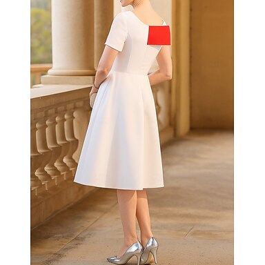 Corte A Hasta la Rodilla Vestido Cóctel Manga Corta Cuello Barco Elegante Vintage Fiesta Poliéster Vestido de Madrina con Bloque de Color