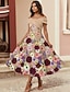 Dos Piezas Traje de vestir Vestido Midi Vestido Invitada Boda Vestido de Madrina Manga Larga Cuello Barco Elegante Vintage cóctel Formal Gasa con Impresión