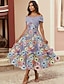 Corte A Hasta el Suelo Vestido de Camisa Vestido Invitada Boda Vestido formal Vestido de Madrina Media Manga Cuello Camisero Elegante Vintage Floral Formal Invitado a la boda Nailon con Estampado flor