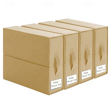 Organizador de sábanas plegable (paquete de 4), cajas de almacenamiento de tela Oxford con asas, contenedores de ropa debajo de la cama para ropa de cama, armario, viajes y uso doméstico.