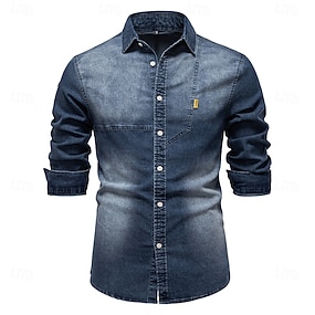 Hombre Camisa Camisa casual Abotonar la camisa Camisa vaquera Plano Vacaciones Diario Bleu Ciel Negro Azul Marino Oscuro Azul Piscina Manga Larga Cuello Invierno Primavera & Otoño Ropa Bolsillo