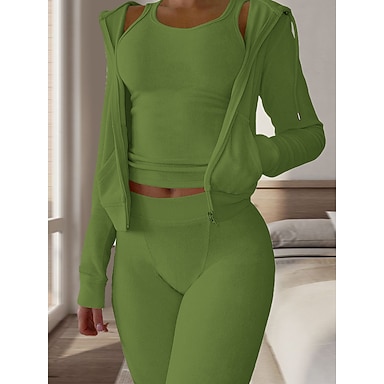 Conjuntos de pijamas para mujer, 3 piezas, color puro, cálido, de moda, de felpa, para el hogar, uso diario, cama de franela, cálida, transpirable, sudadera con capucha de manga larga, pantalón,