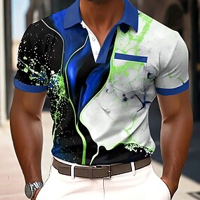 Hombre Mármol Camisetas polo Manga Corta Camisas de polo Camisas con cuello Informal de negocios Exterior Ropa Deportiva Ropa Cotidiana Impresión 3D Botones Malla Transpirable Primavera verano Azul