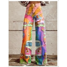 Retro Antiguo Años 70 Genial Pantalones Pantalones de pierna ancha Hippie Disco Alta cintura Psicodélico Estilo de jeans falsos Disfraz Mujer Carnaval Casual Diario Festival de Música Fiesta temática