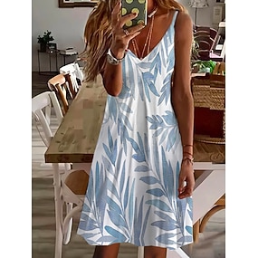 Vestido mini de mujer vestido en línea vestido casual vestido petite vestido de cambio moda básica clásica al aire libre vacaciones fiesta ajuste regular floral estampado de flores sin mangas cuello