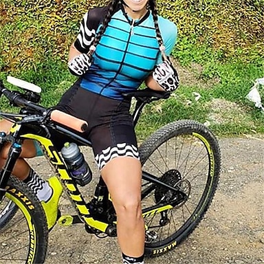 Mujer Traje de triatlón Manga Corta MTB Bicicleta Montaña Ciclismo Carretera Verano Azul Piscina Blanco Rosa Graphic Bicicleta Secado rápido Resistente a los UV Cremallera delantera Bolsillo trasero