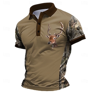 Hombre Venados Polo Manga Corta Camisas de polo Camisas con cuello Casual Escuela Exterior Ropa Cotidiana Ropa de casa Impresión 3D Verano Primavera Otoño Negro Marrón Gris