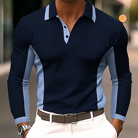 Hombre Bloque de color Polo Manga Larga Camisas de polo Diseño Casual Negocio Ropa Cotidiana Impresión 3D Botones Primavera Otoño Azul Piscina Negro Azul Marino