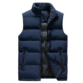 Hombre Chaleco acolchado Diario Casual Otoño invierno Bolsillo Poliéster Mantiene abrigado Color sólido Cremallera Escote Chino Ajuste regular Negro Azul Marino Oscuro Azul Piscina Caqui Chaleco