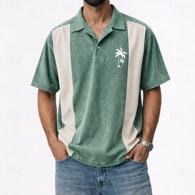 Hombre Polo Negocio Casual Cuello Vuelto Manga Corta Moda Geométrico Bloque de Color Botones Verano Azul Verde Trébol Polo