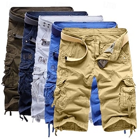 Hombre Pantalón Corto Cargo Pantalón corto Pantalones cortos casuales Shorts para senderismo Correa Bolsillo Cintura elástica Color sólido Longitud de la rodilla Deporte Carrera Ropa de calle Elegante