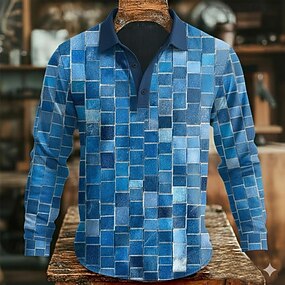 Hombre Bloque de color Geométrico Polo Manga Larga Camisas de polo Diseño Casual Exterior Calle Ropa Deportiva Ropa Cotidiana Impresión 3D Botones Primavera Otoño Invierno Azul Piscina Azul cielo Gris