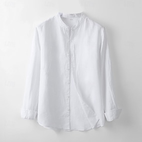 Hombre Camisa Camisa de lino Blanco Gris Ligero Azul claro Manga Larga Color sólido Cuello Mao Escuela Formal Botones Ropa Elegante Vacaciones Vintage Neutral