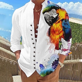 Hombre Loro Camisa camisa hawaiana Manga Larga Camisa Escote Chino Moda Design Casual Exterior Vacaciones Calle Blanco Amarillo Rojo S M L