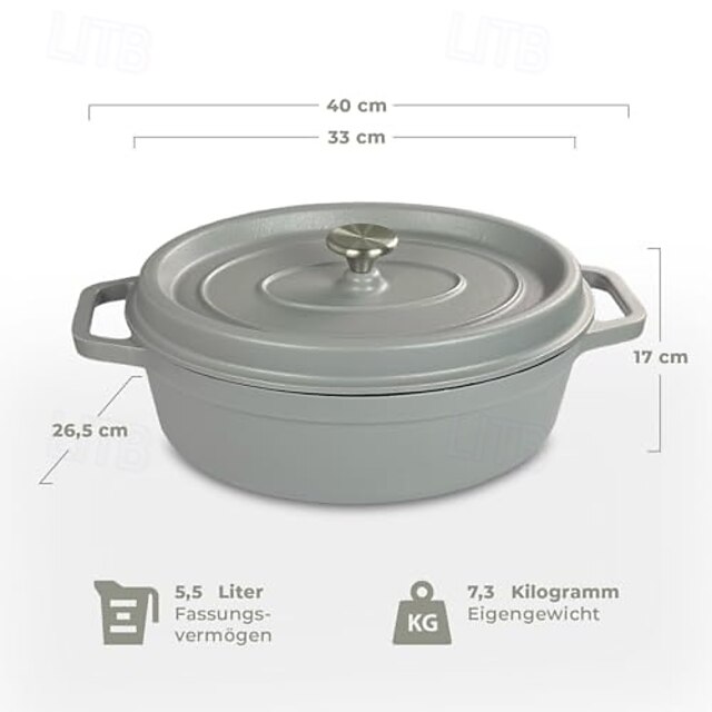 Cacerola ovalada de hierro fundido con tapa antigoteo, color gris claro 2026 - $130.99 –P3