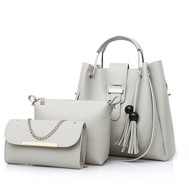 Sexo: Mujer, Tipo: bolsas de cubo, Material: Cuero de PU, Cantidad: 3 Piezas, Incrustaciones: Cremallera, Cadena, Borla, Diseño: Color sólido, Ocasión: De Compras, Diario, San Valentín, Exterior, Oficina, Ancho (cm): 14, Longitud (cm): 33, Altura (cm): 30, Función: Gran Capacidad, Categoría: Conjunto de bolsa, Bolso de mano, Bolso bandolera, 2025 Tendencia: Conjunto de Bolsos, Bolsos de Mano,