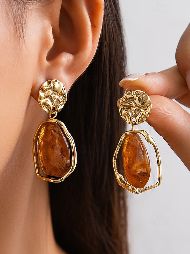 Pendientes colgantes irregulares de resina para mujer: joyas llamativas de aleación de oro texturizado para fiestas, bodas y atuendos casuales y elegantes.